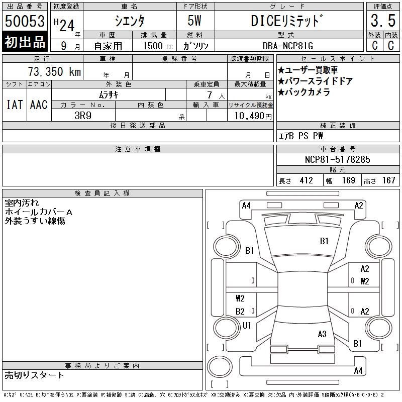 TOYOTA SIENTA DICE LIMITED - лот 50053