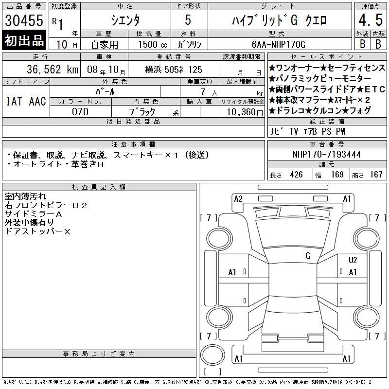 TOYOTA SIENTA HYBRID GKERO - лот 30455