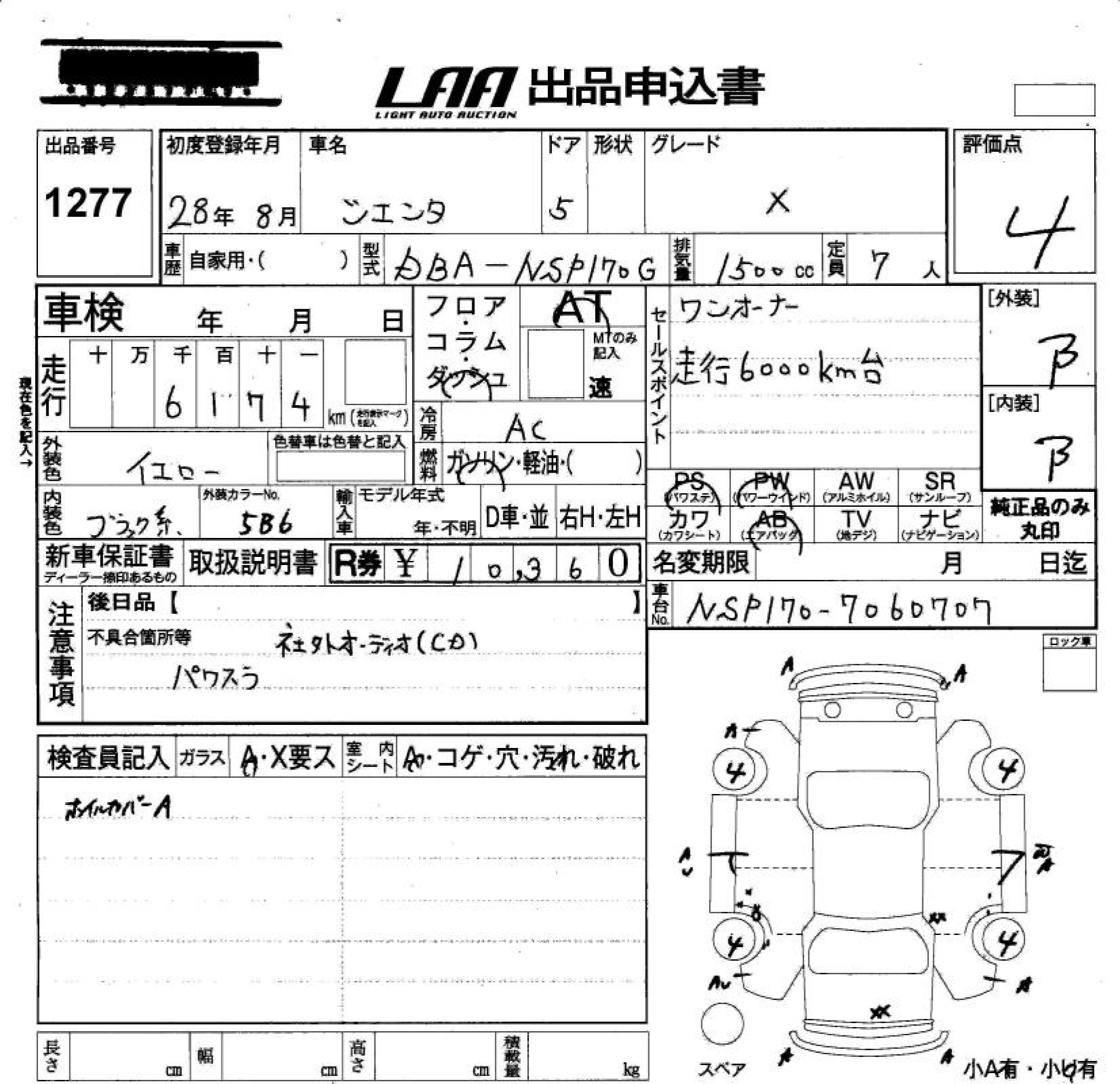 TOYOTA SIENTA X - лот 1277