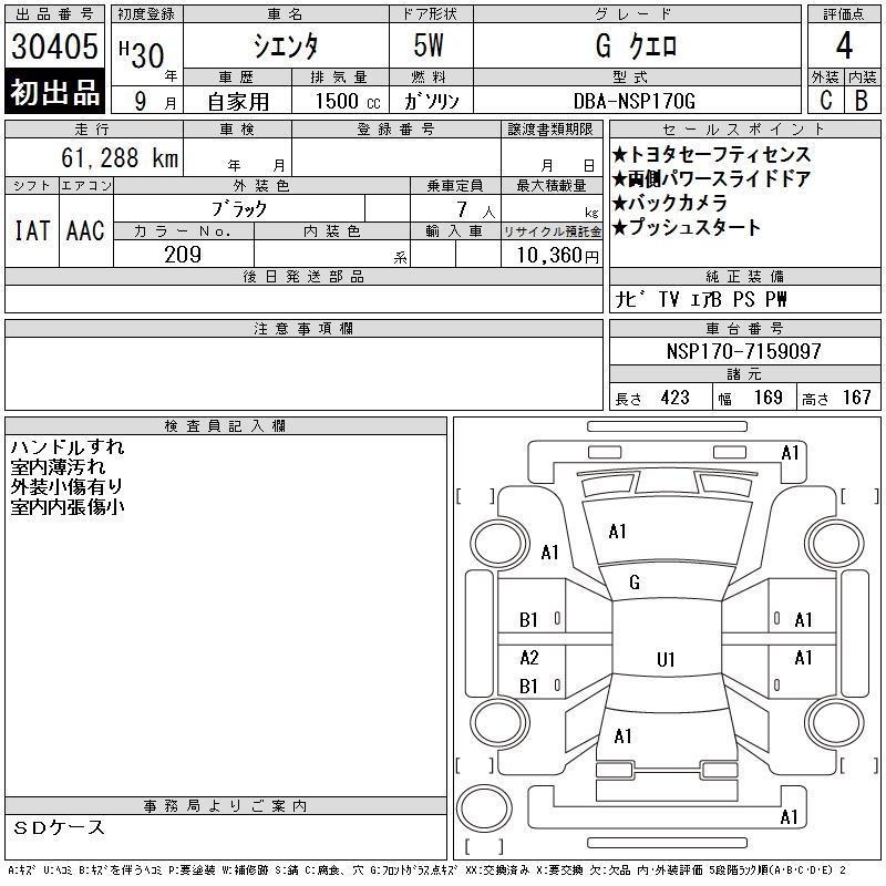TOYOTA SIENTA GKERO - лот 30405