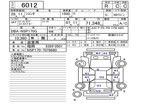 TOYOTA SIENTA - лот 6012
