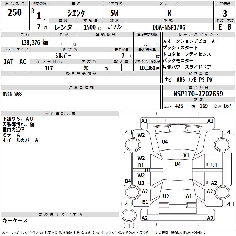 TOYOTA SIENTA - лот 250