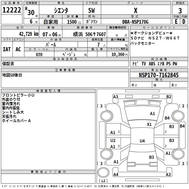 TOYOTA SIENTA - лот 12222