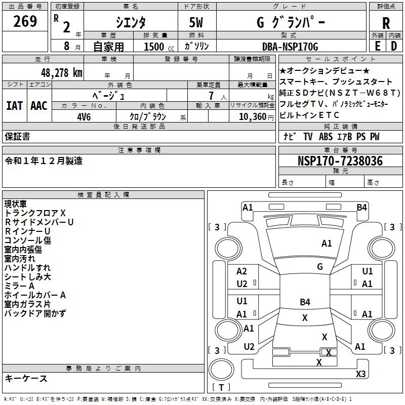 TOYOTA SIENTA - лот 269