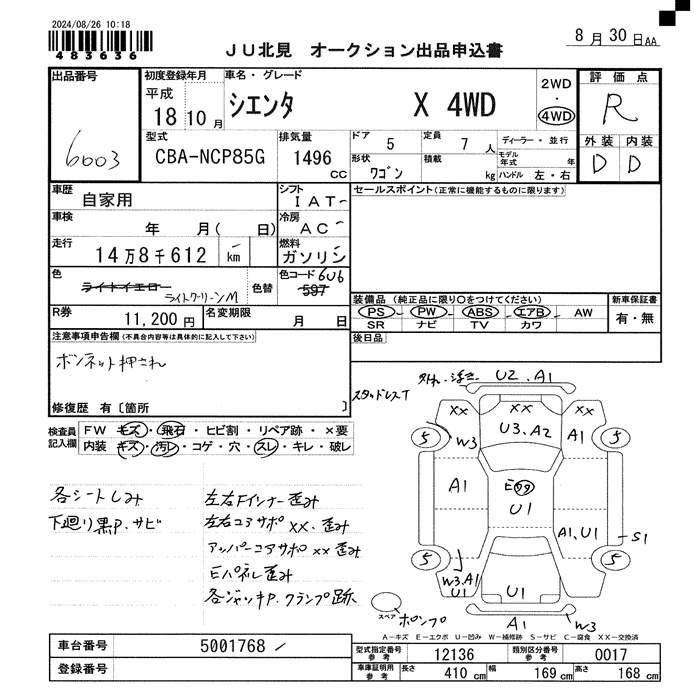 TOYOTA SIENTA - лот 6003