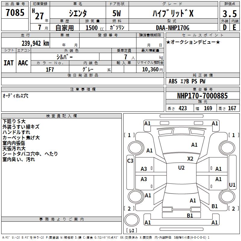 TOYOTA SIENTA - лот 7085