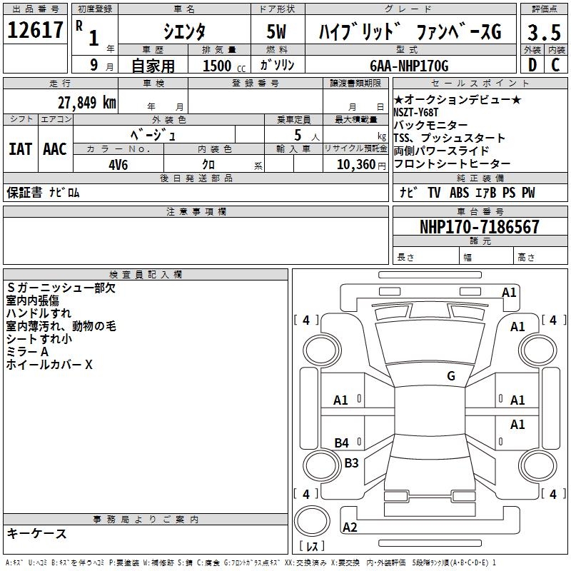 TOYOTA SIENTA - лот 12617