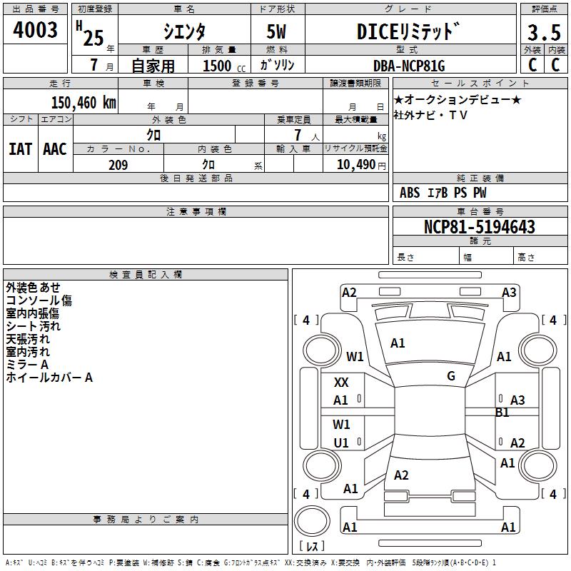 TOYOTA SIENTA - лот 4003