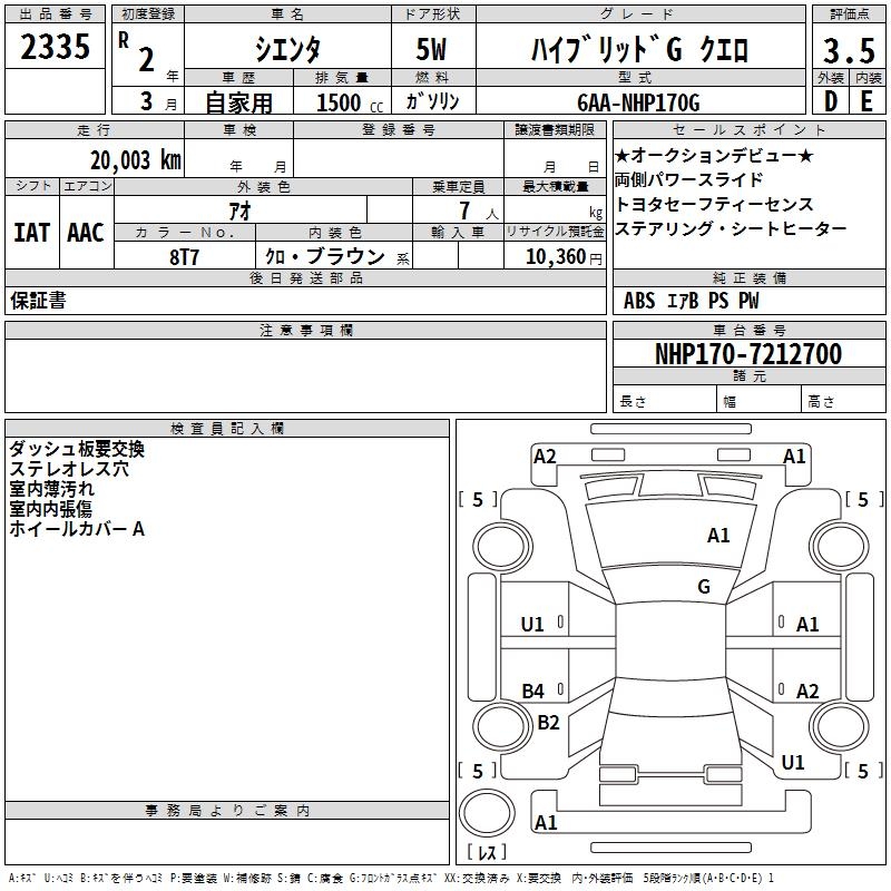 TOYOTA SIENTA - лот 2335