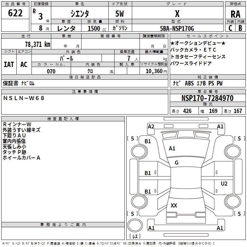 TOYOTA SIENTA - лот 622