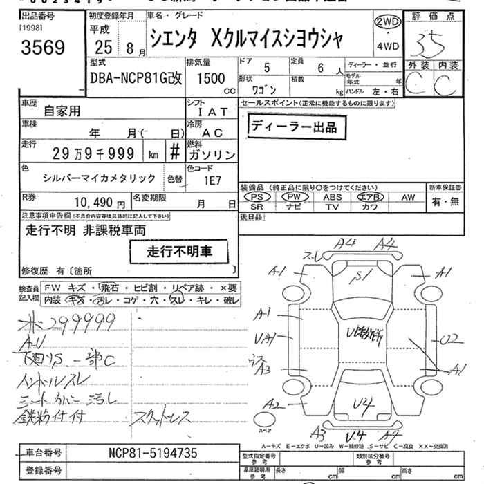 TOYOTA SIENTA - лот 3569