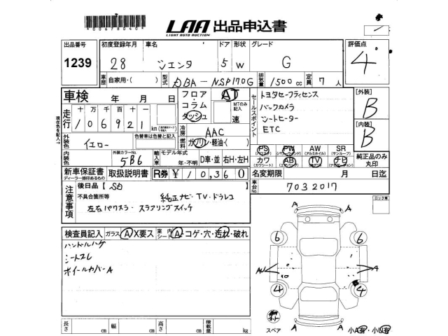 TOYOTA SIENTA - лот 1239