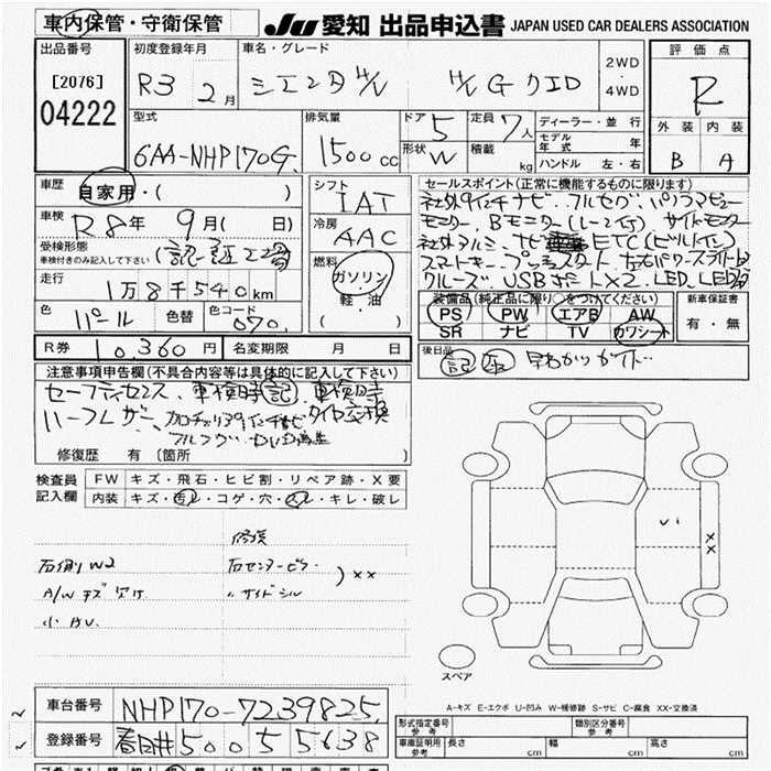 TOYOTA SIENTA - лот 4222