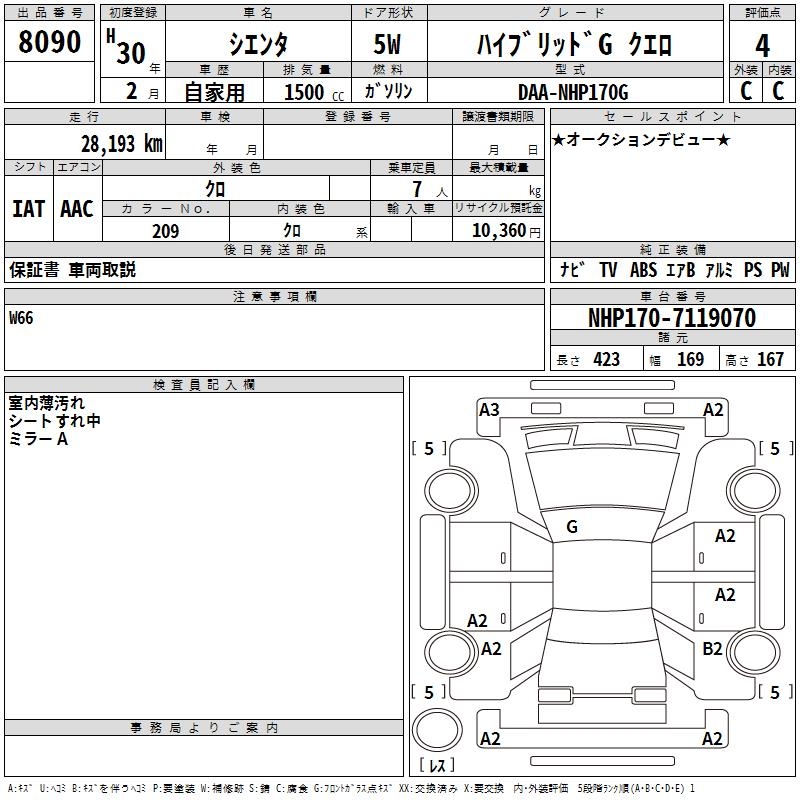 TOYOTA SIENTA - лот 8090