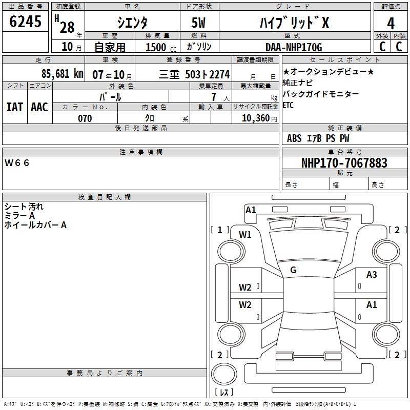 TOYOTA SIENTA - лот 6245