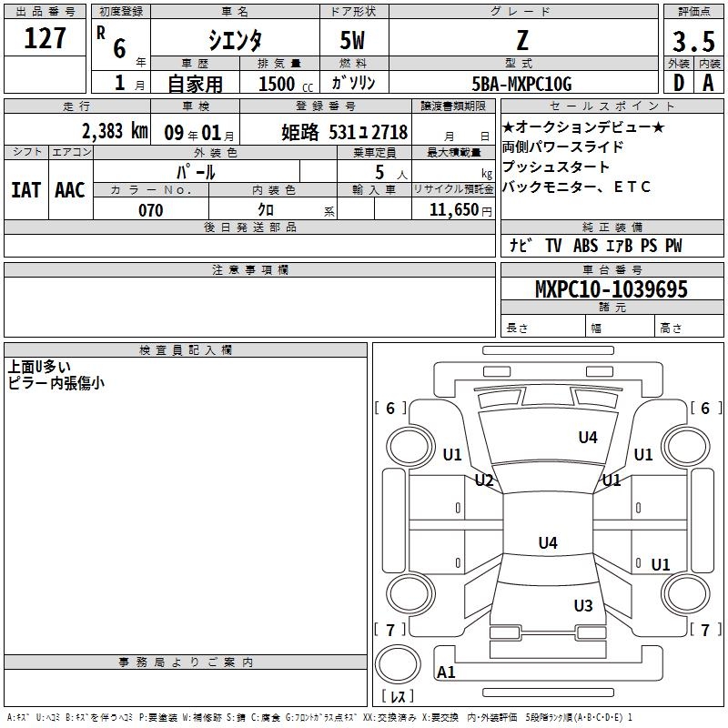 TOYOTA SIENTA - лот 127