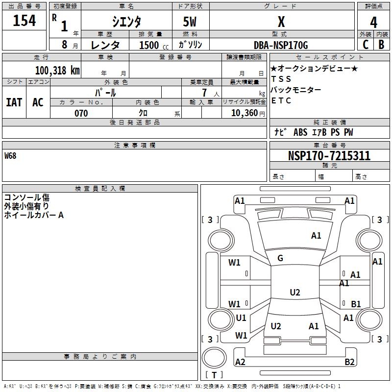 TOYOTA SIENTA - лот 154