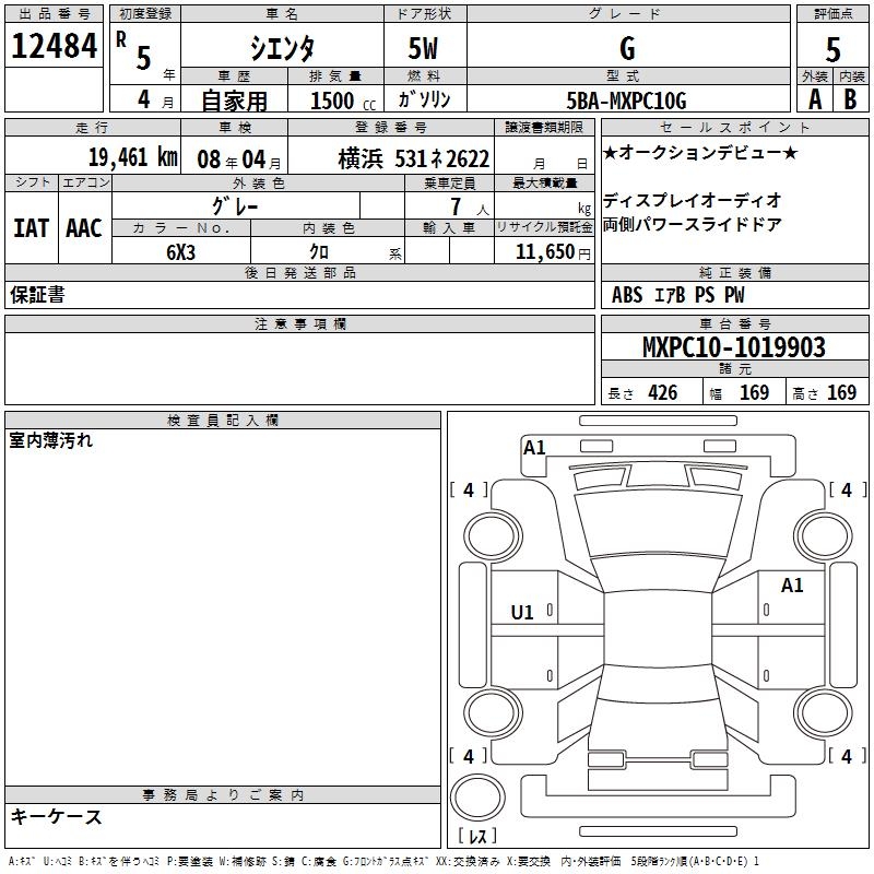 TOYOTA SIENTA - лот 12484