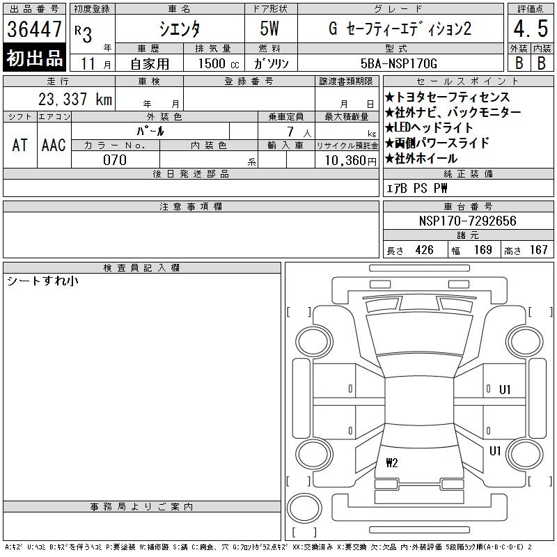 TOYOTA SIENTA - лот 36447
