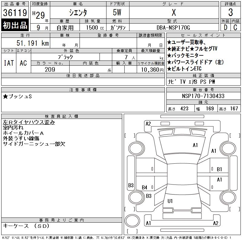 TOYOTA SIENTA - лот 36119