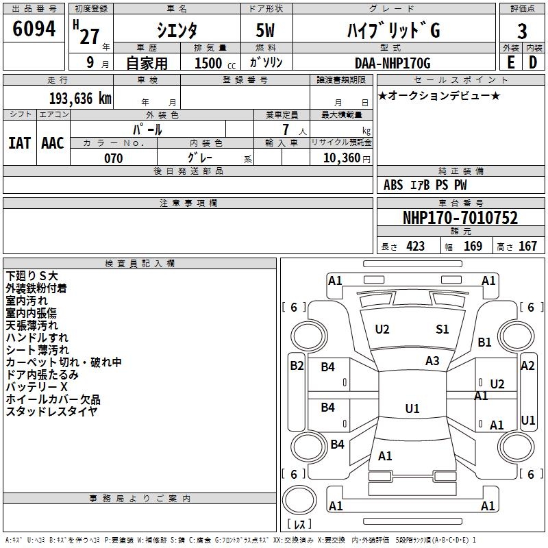 TOYOTA SIENTA - лот 6094