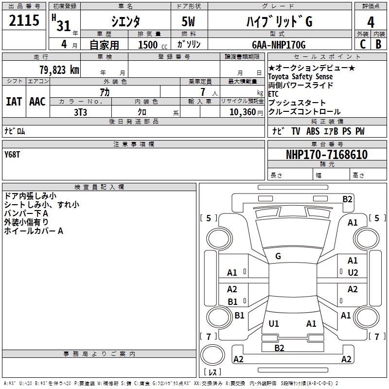 TOYOTA SIENTA - лот 2115