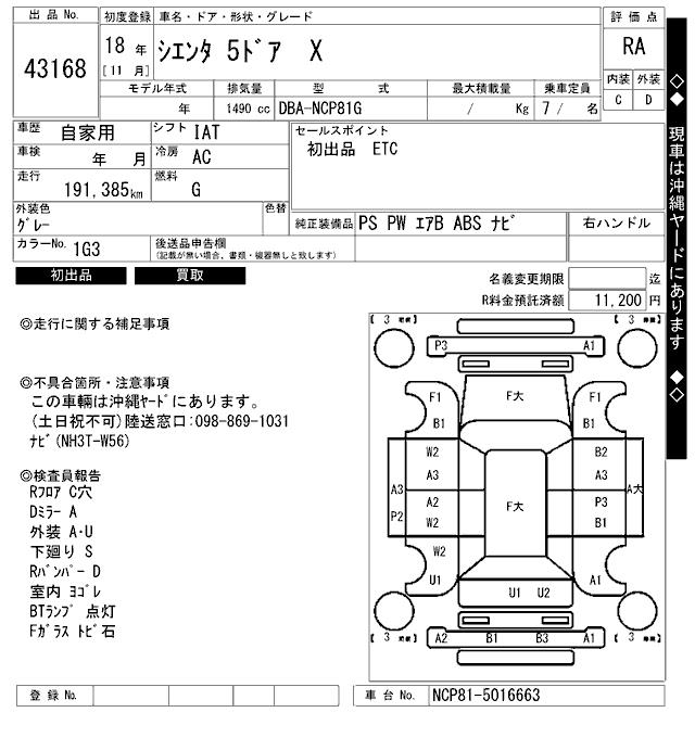TOYOTA SIENTA - лот 43168