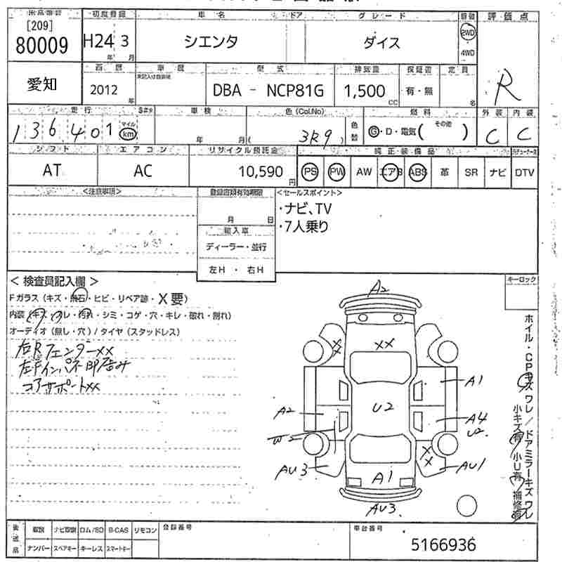TOYOTA SIENTA - лот 80009