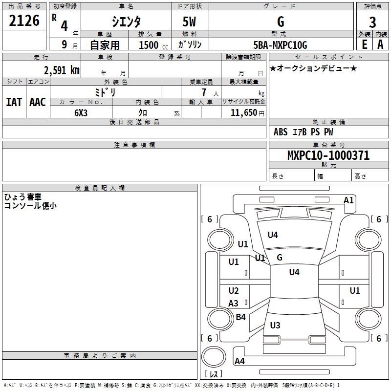 TOYOTA SIENTA - лот 2126