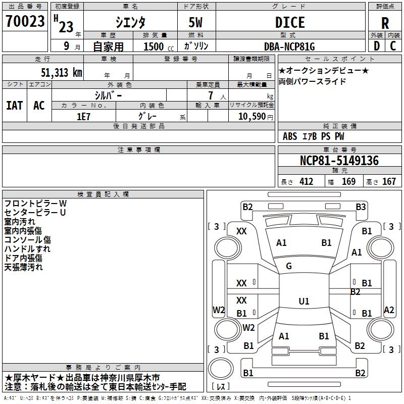 TOYOTA SIENTA - лот 70023