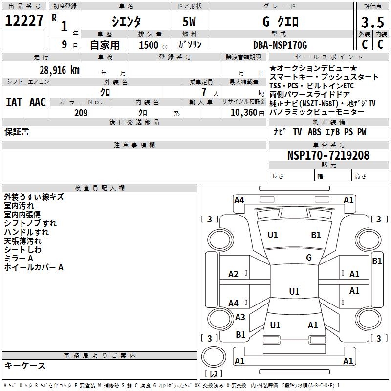 TOYOTA SIENTA - лот 12227