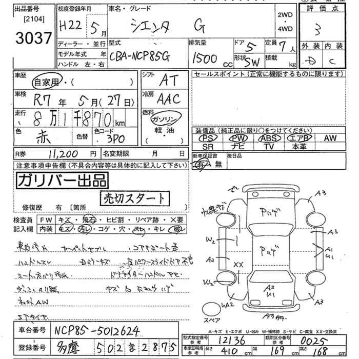 TOYOTA SIENTA - лот 3037