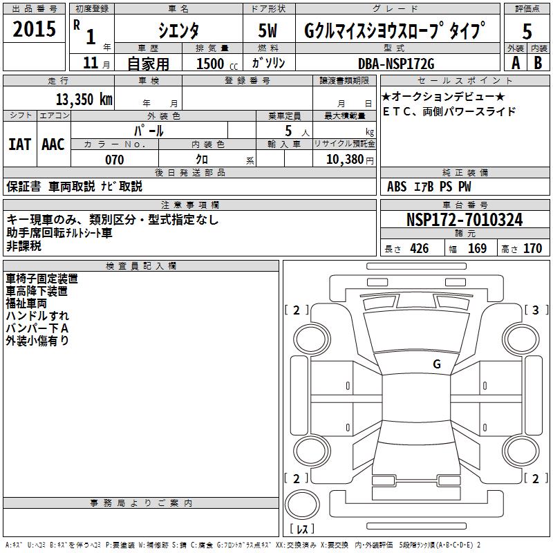 TOYOTA SIENTA - лот 2015
