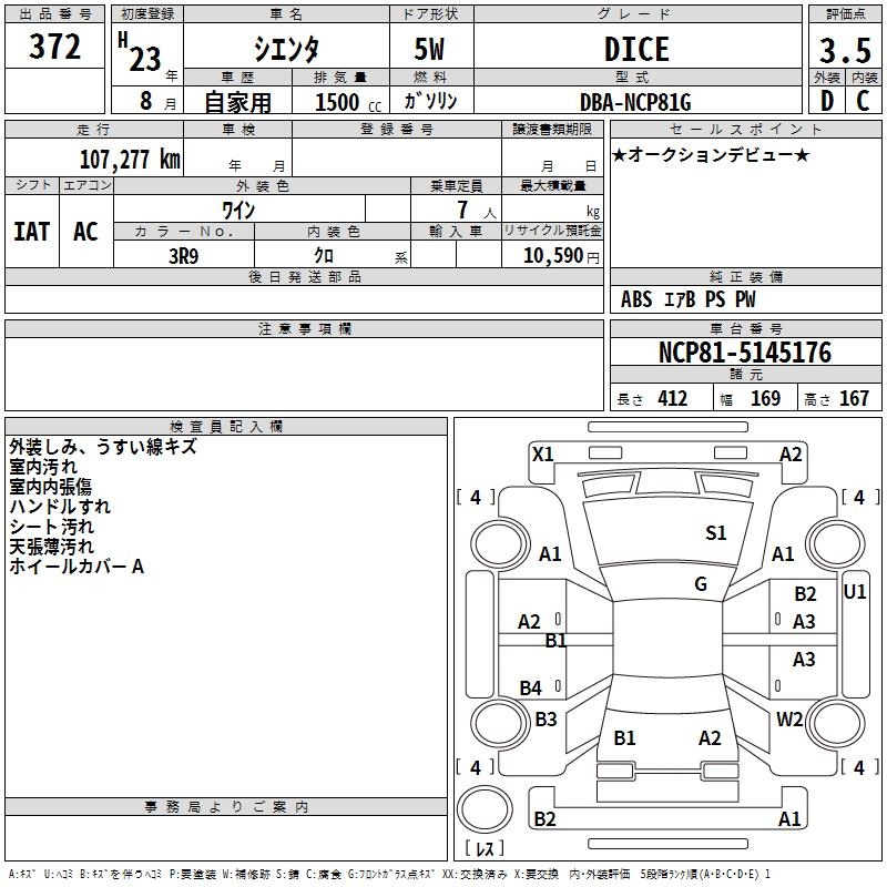 TOYOTA SIENTA - лот 372