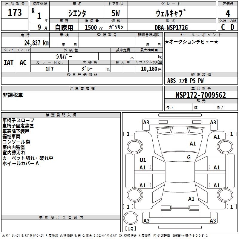 TOYOTA SIENTA - лот 173