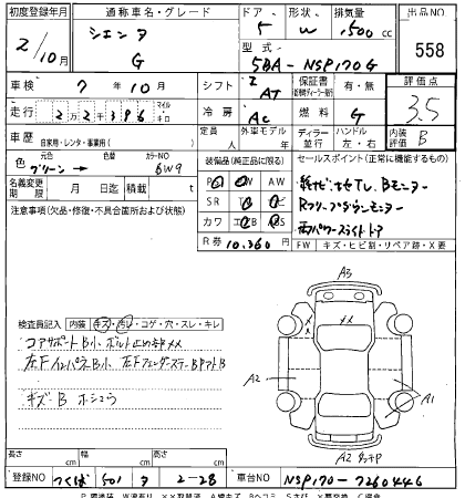 TOYOTA SIENTA - лот 558