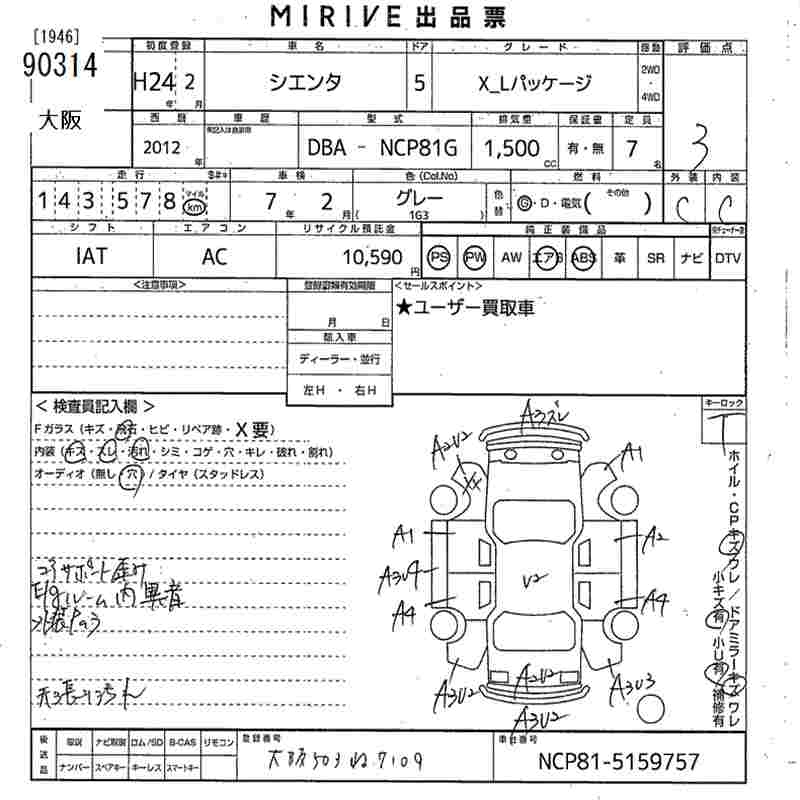 TOYOTA SIENTA - лот 90314