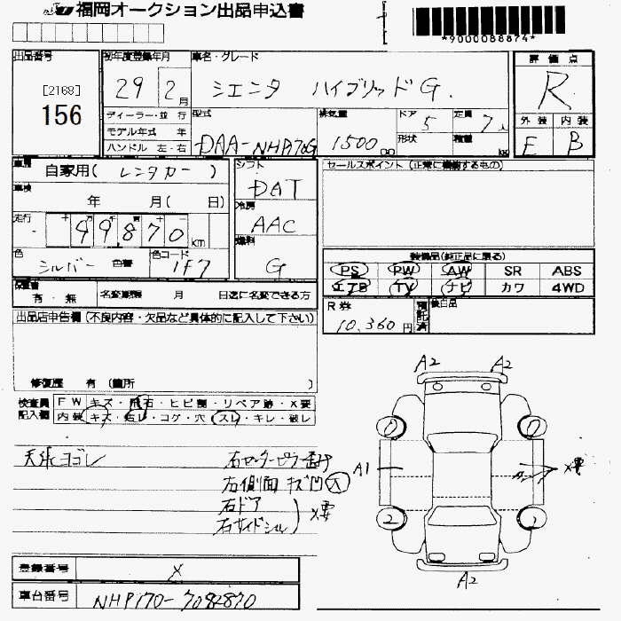 TOYOTA SIENTA - лот 156