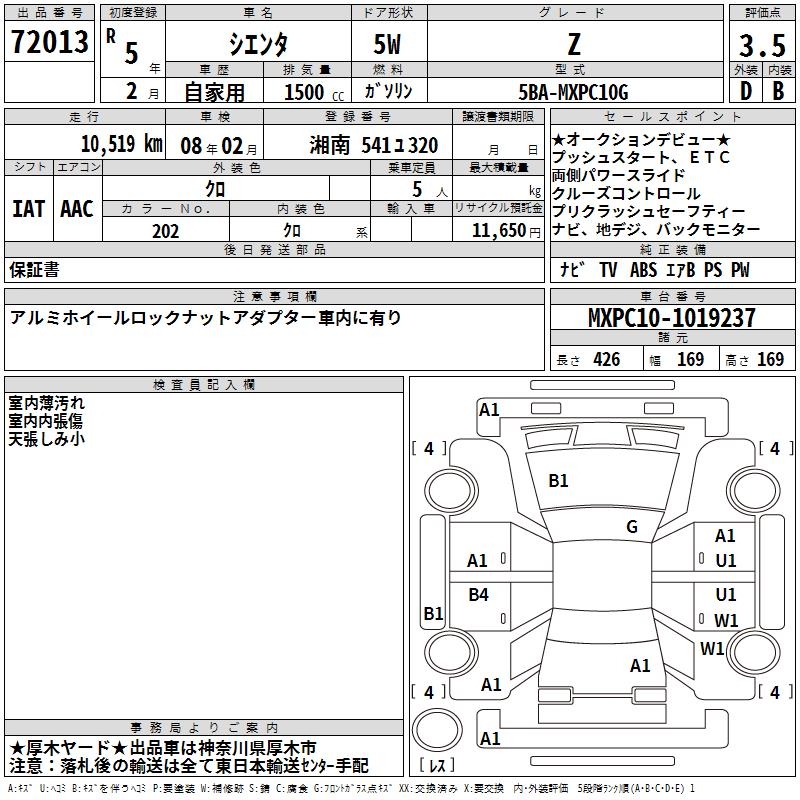 TOYOTA SIENTA - лот 72013