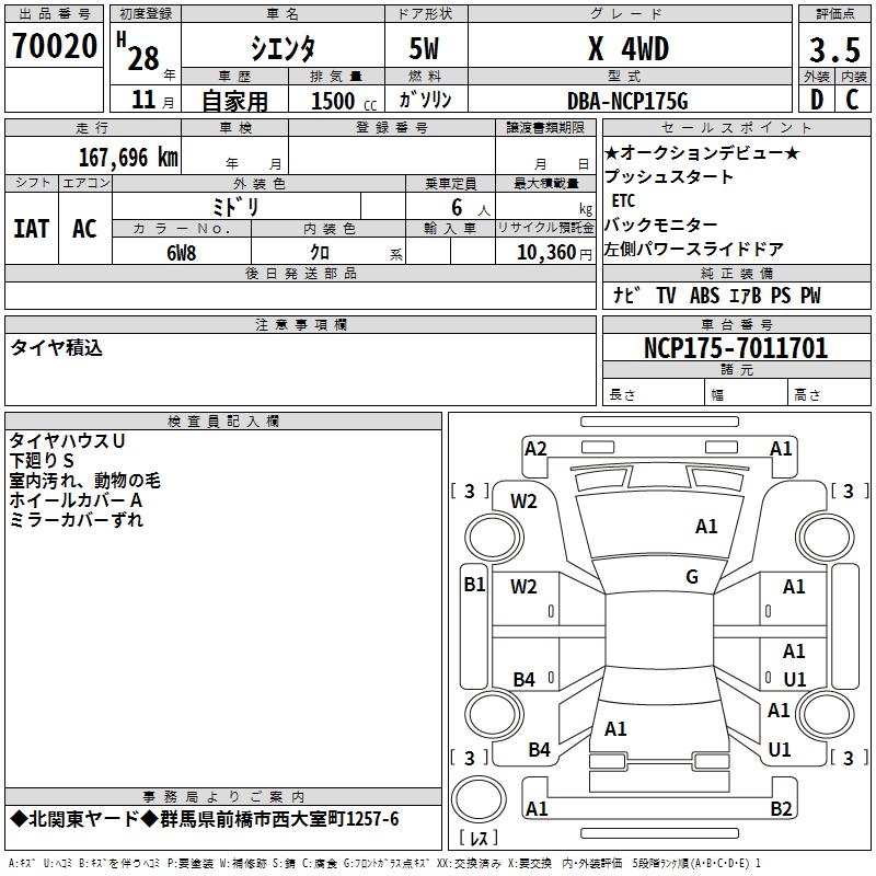 TOYOTA SIENTA - лот 70020