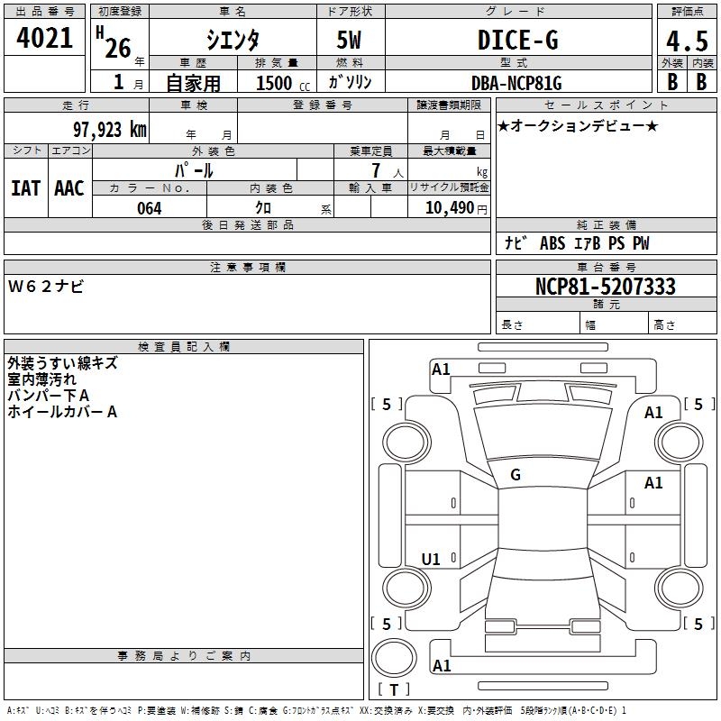 TOYOTA SIENTA - лот 4021