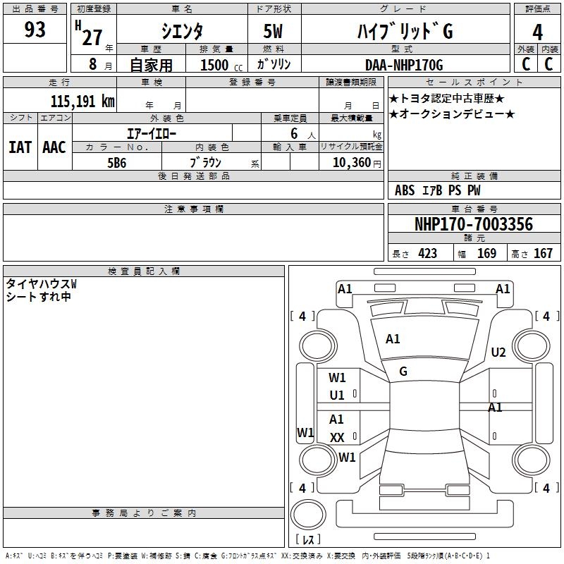 TOYOTA SIENTA - лот 93