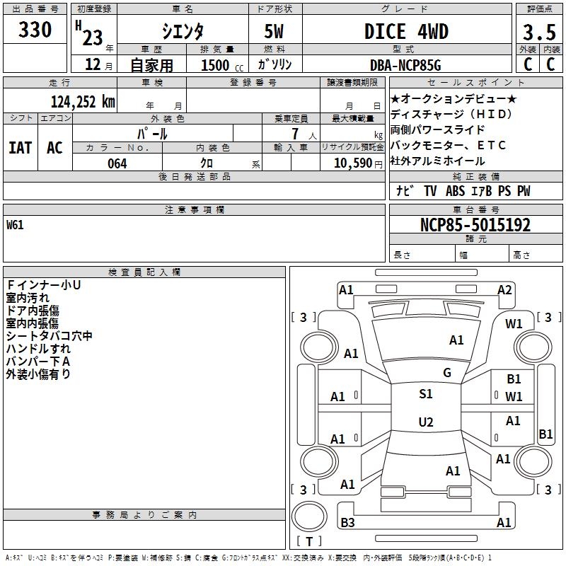 TOYOTA SIENTA - лот 330
