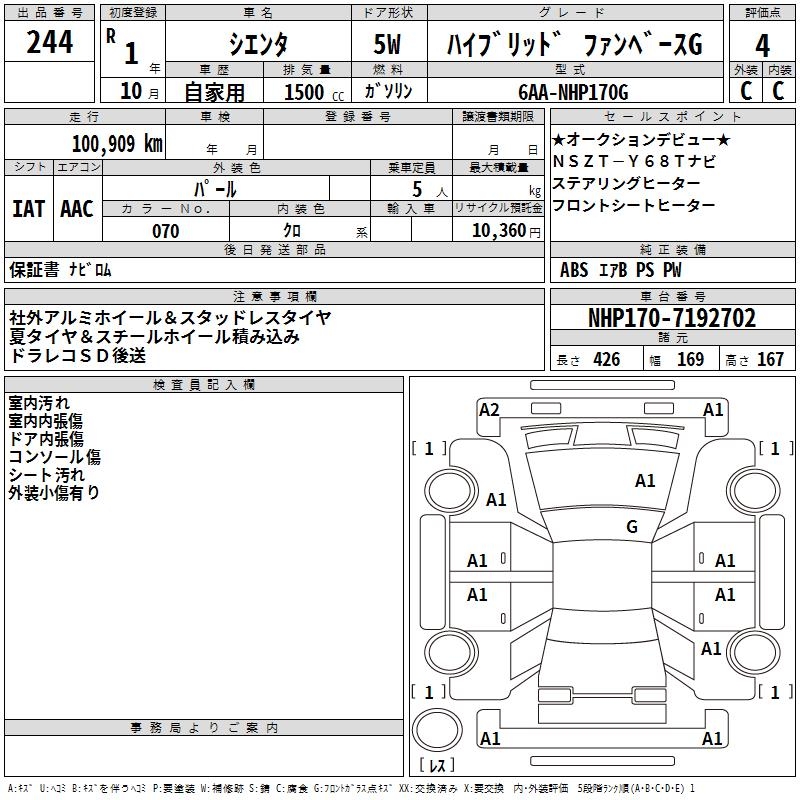 TOYOTA SIENTA - лот 244