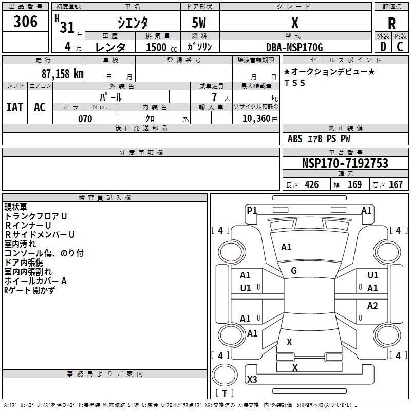 TOYOTA SIENTA - лот 306
