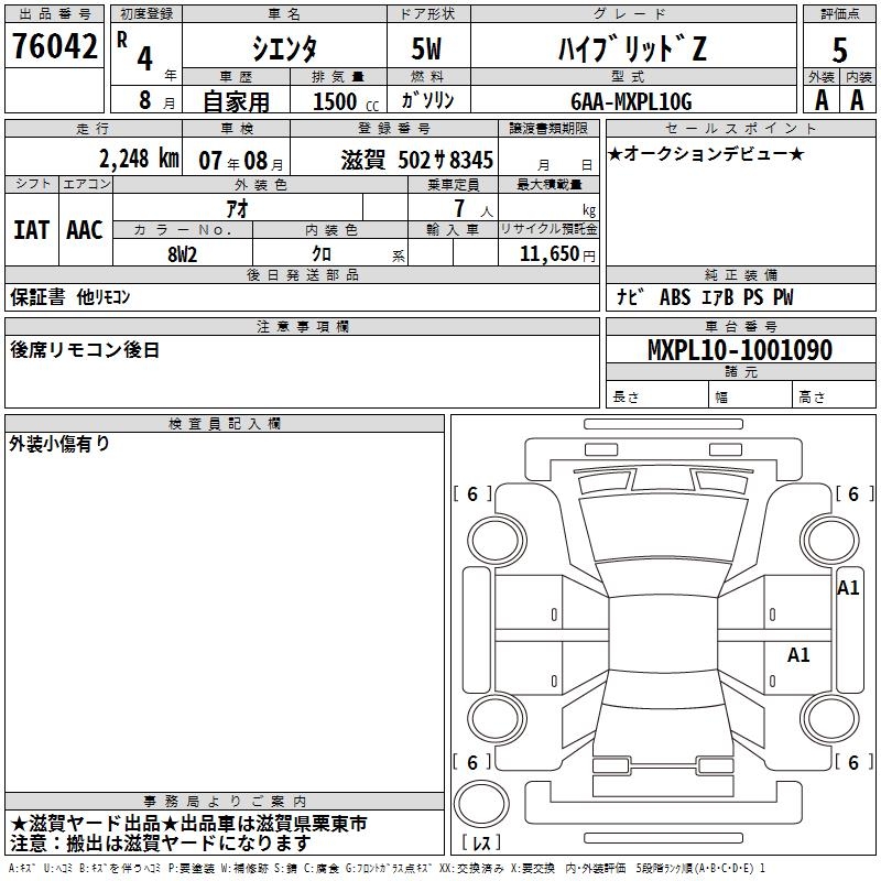 TOYOTA SIENTA - лот 76042