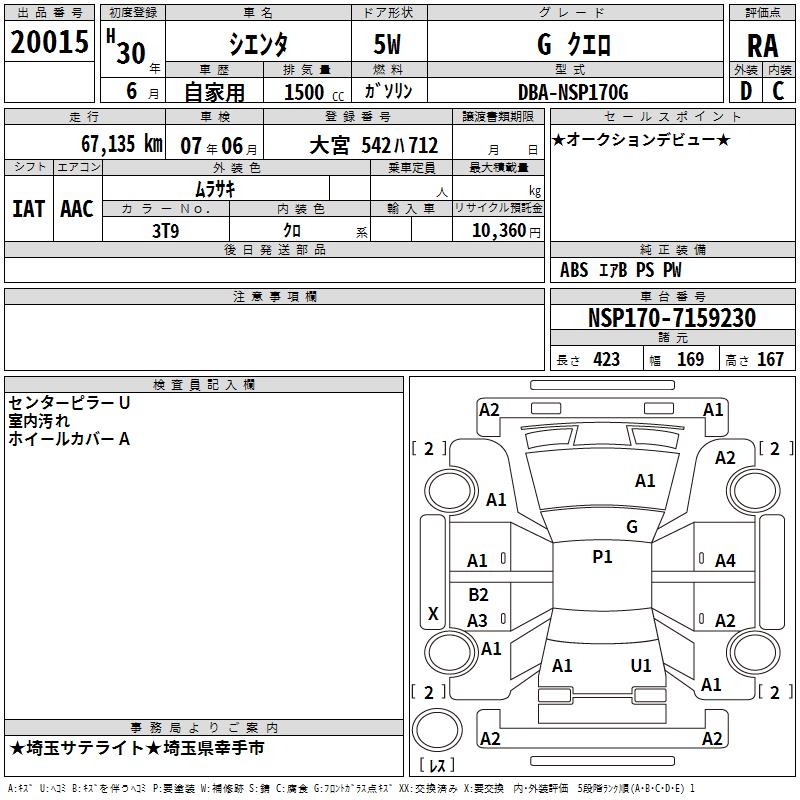 TOYOTA SIENTA - лот 20015
