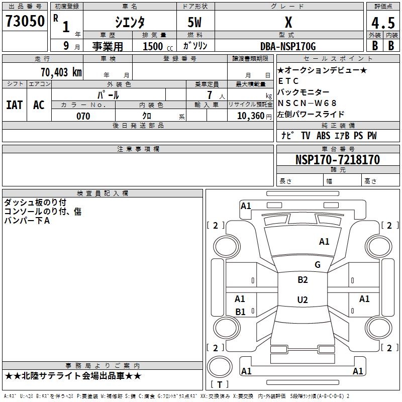 TOYOTA SIENTA - лот 73050