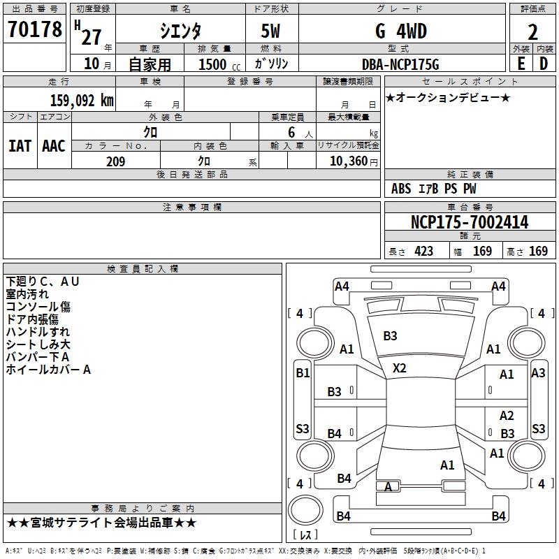 TOYOTA SIENTA - лот 70178
