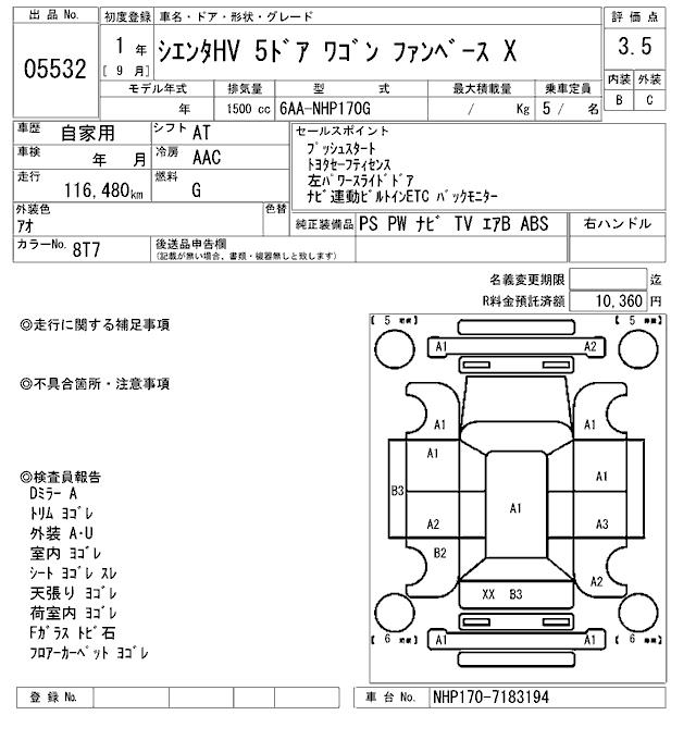 TOYOTA SIENTA - лот 5532